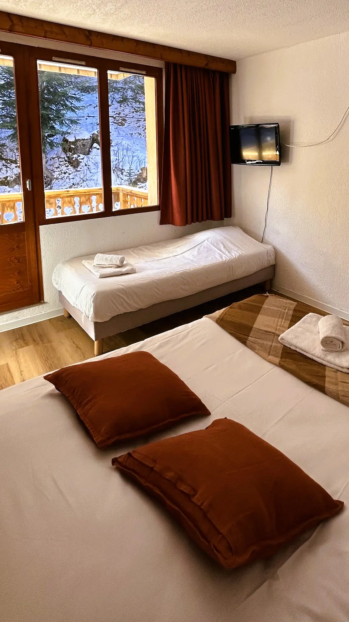 Nous disposons de 84 chambres confortables de 2 à 6 personnes, toutes équipées d’une salle de bain privative, d’une télévision écran plat avec les chaînes de la TNT et d’un balcon privatif.